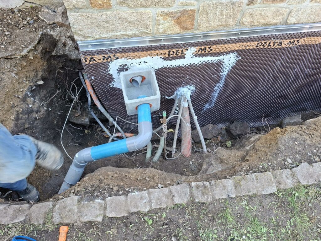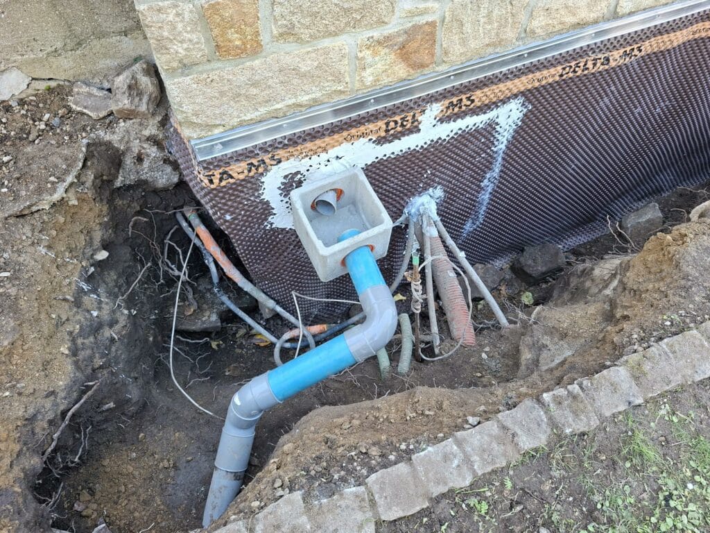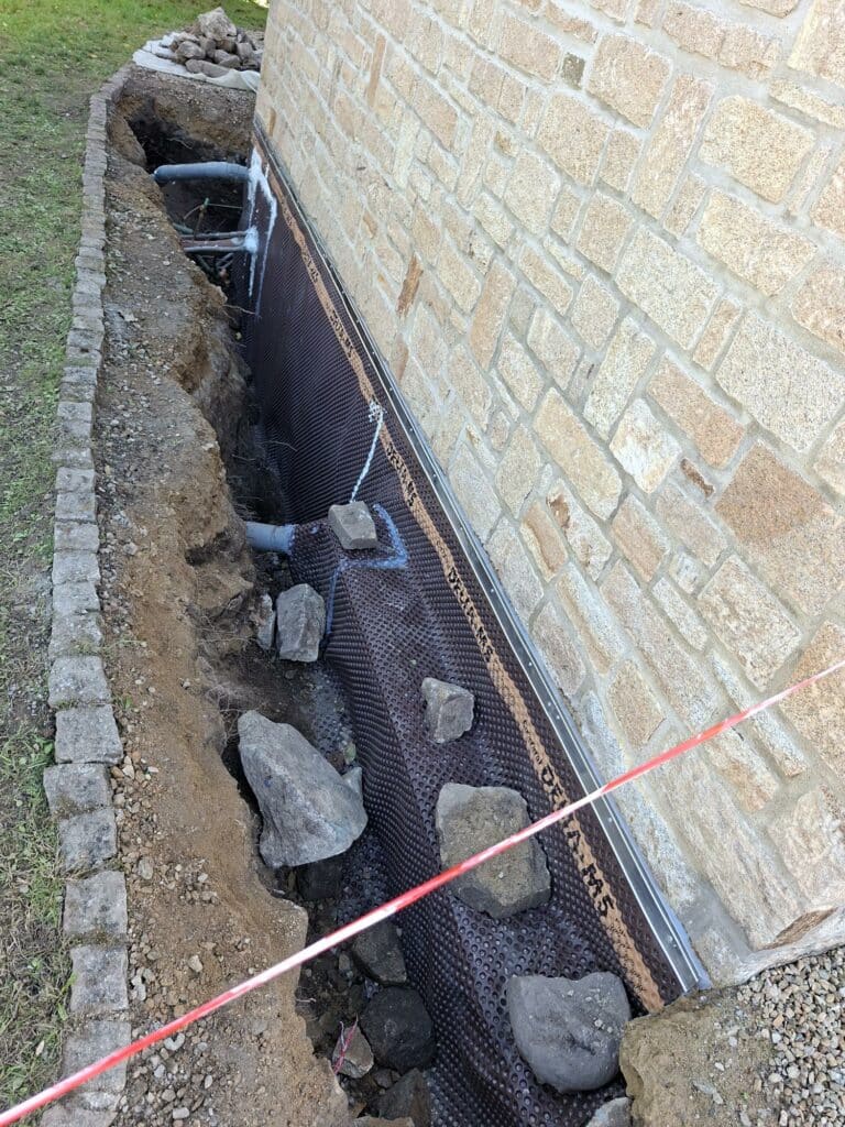 Une fois le mur à nu, nous avons appliqué un complexe d’étanchéité professionnel :